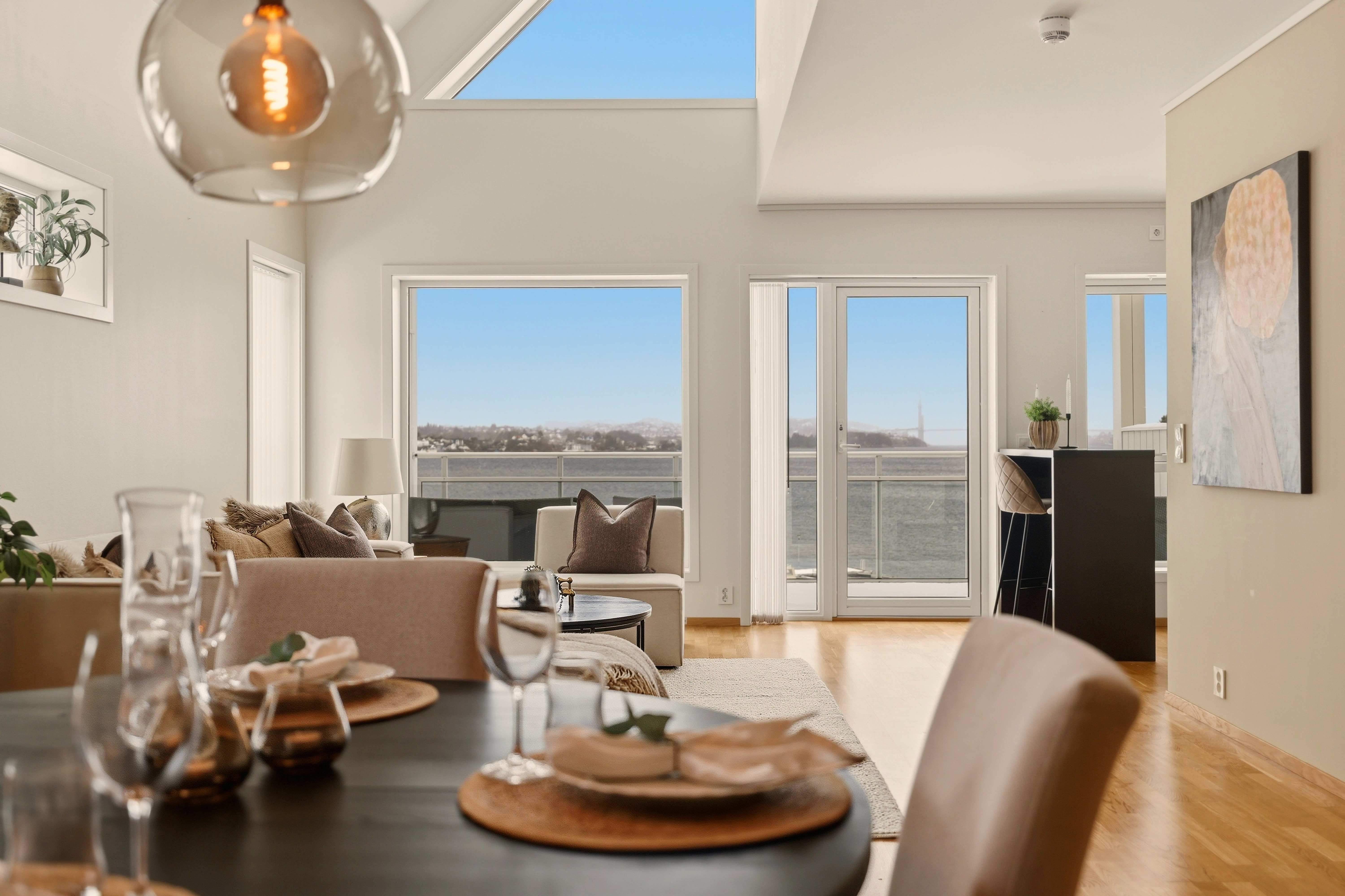 Tiltalende toppleilighet over to plan – moderne, innholdsrik og med sjønær beliggenhet!