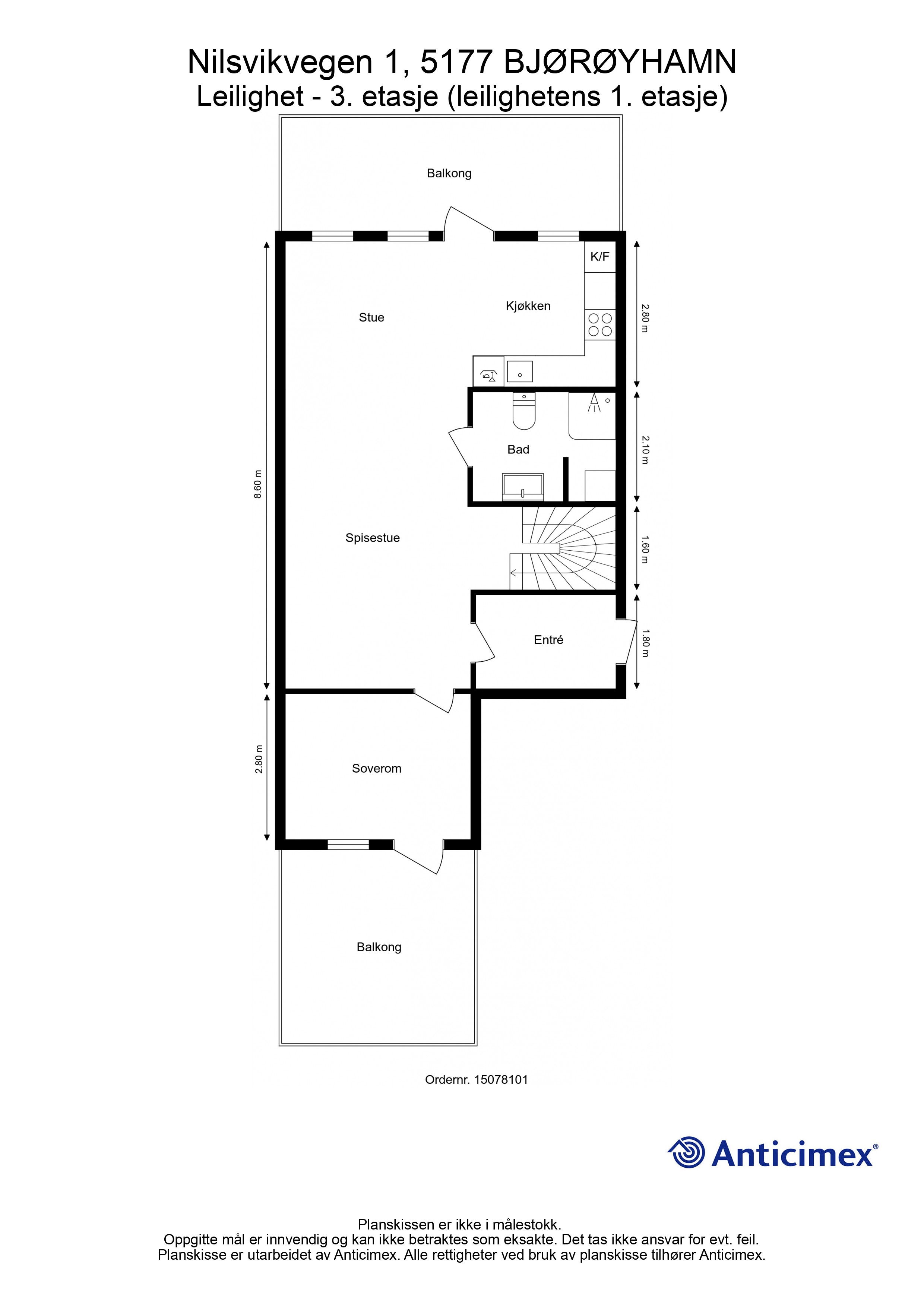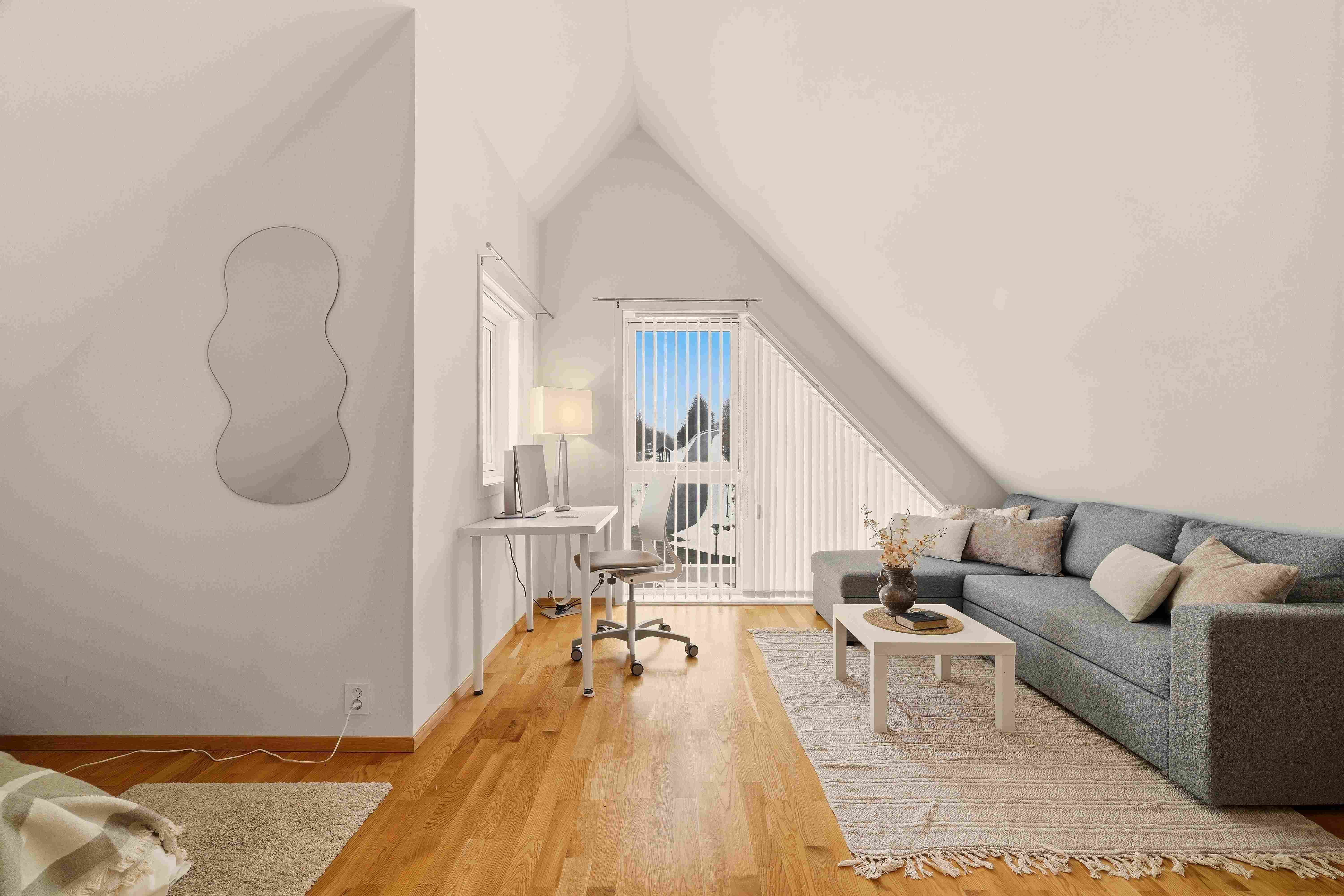 Leiligheten ligger i toppetasjen og strekker seg over to plan, noe som gir en særegen romfølelse og en planløsning som skaper både luft og privatliv. Med hele tre gode soverom, passer boligen perfekt for både par, familier og dem som ønsker ekstra plass til hjemmekontor eller gjesterom.