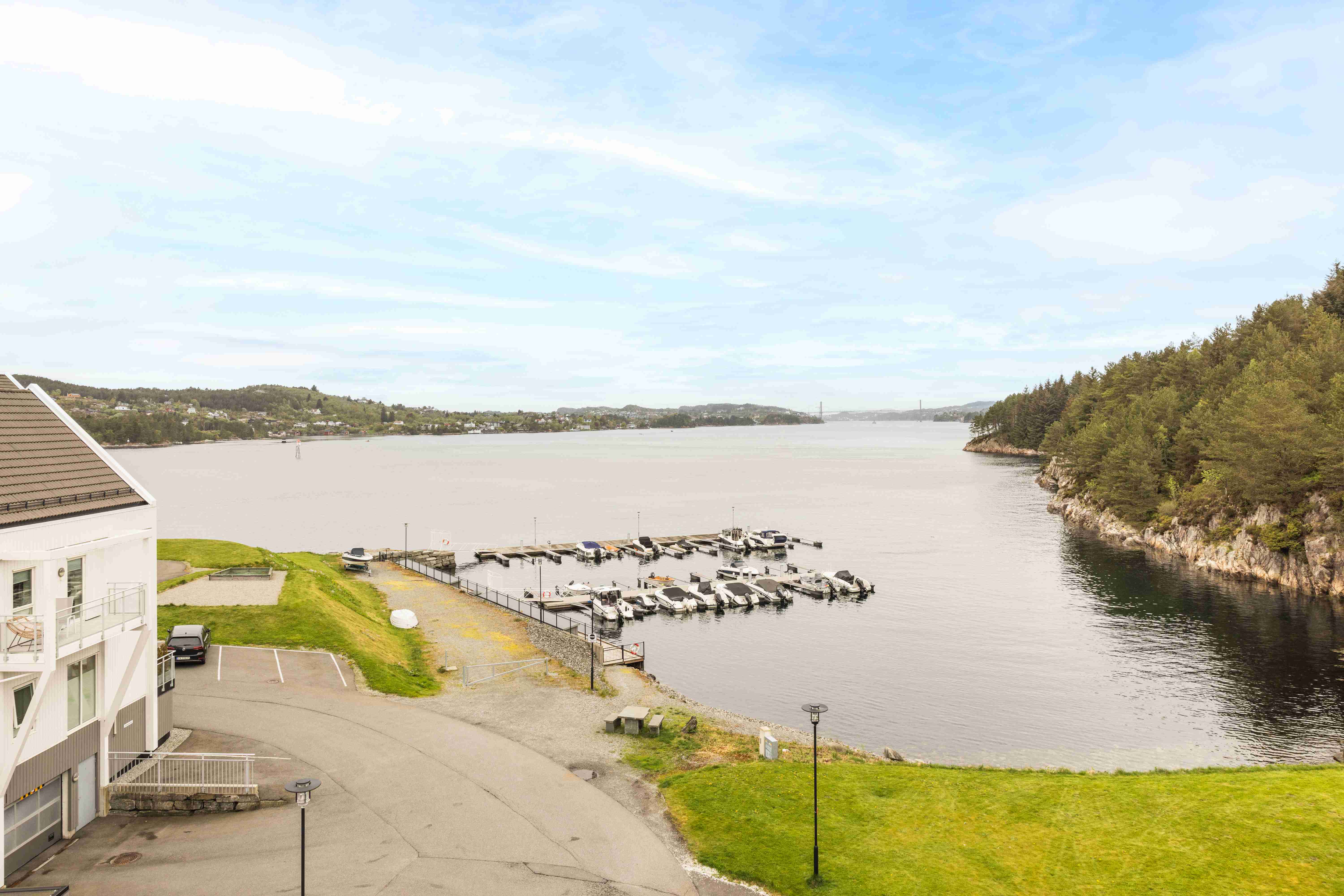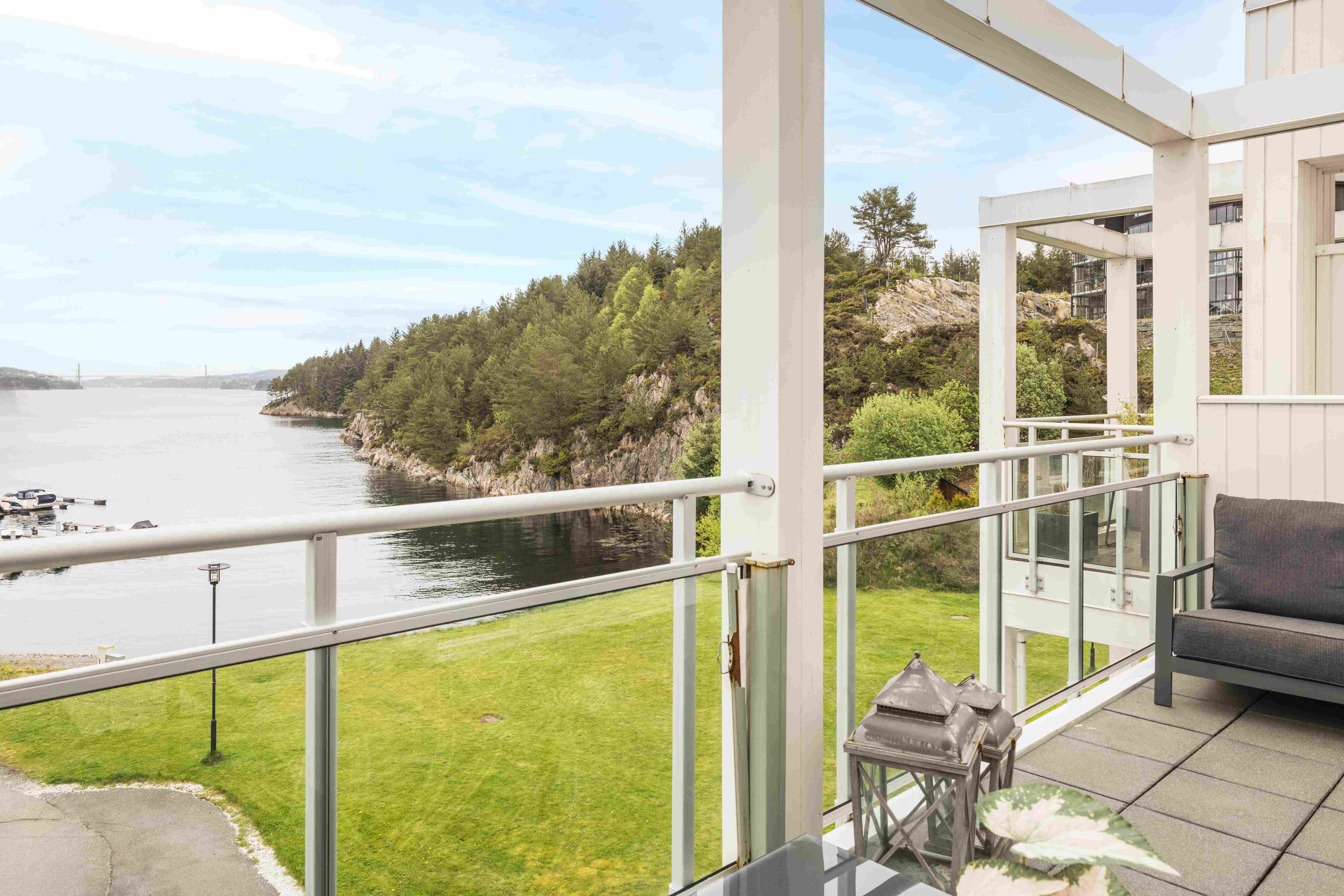 Med utgang fra hovedsoverommet er det tilkomst til en syd-vestvendt uteplass og fra stue er det adkomst til en nordvendt terrasse med glassrekkverk og nydelig sjøutsikt.