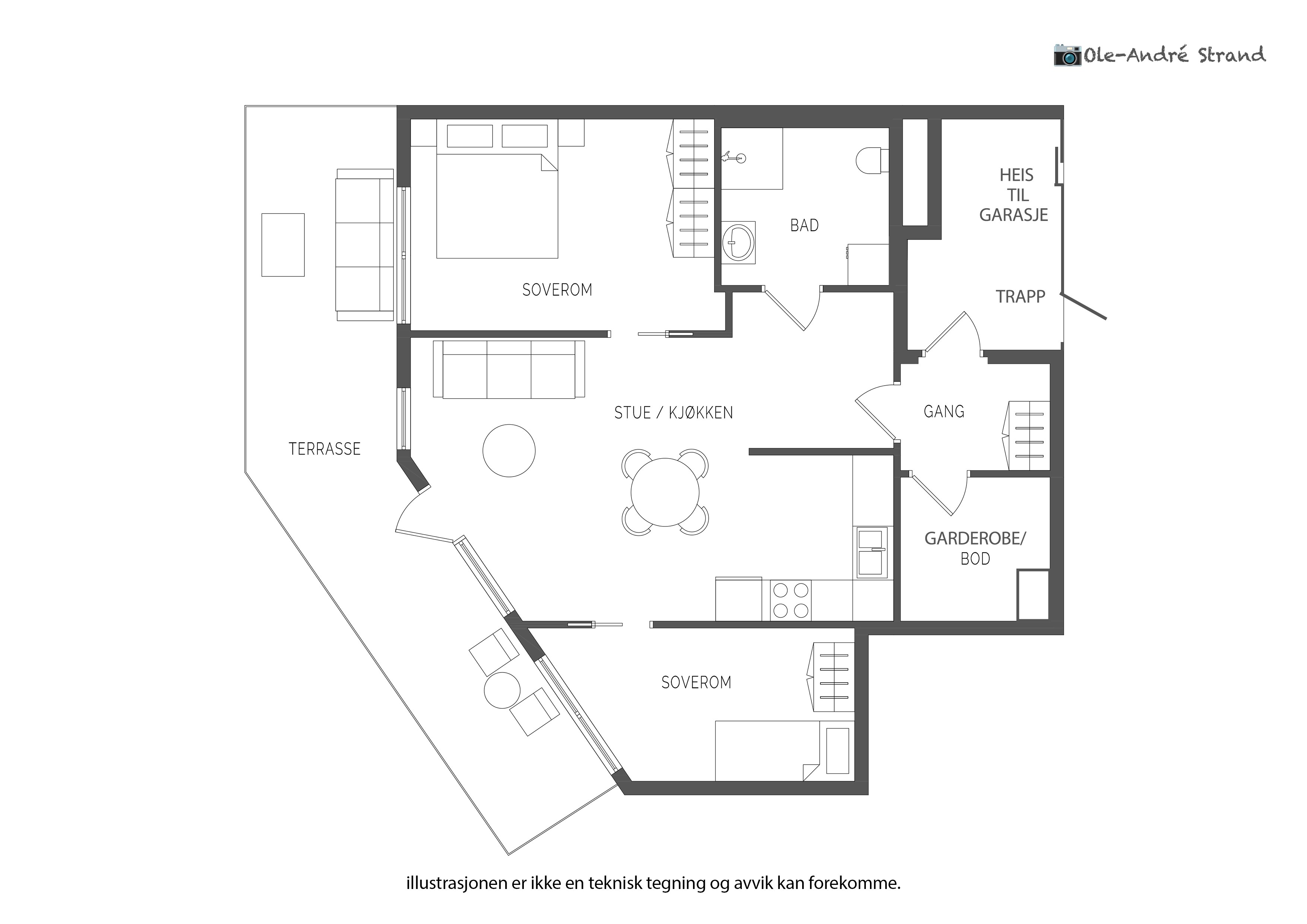 Attraktiv topp- og hjørneleilighet med solrik balkong, heis og garasje – sentralt på Søreide
