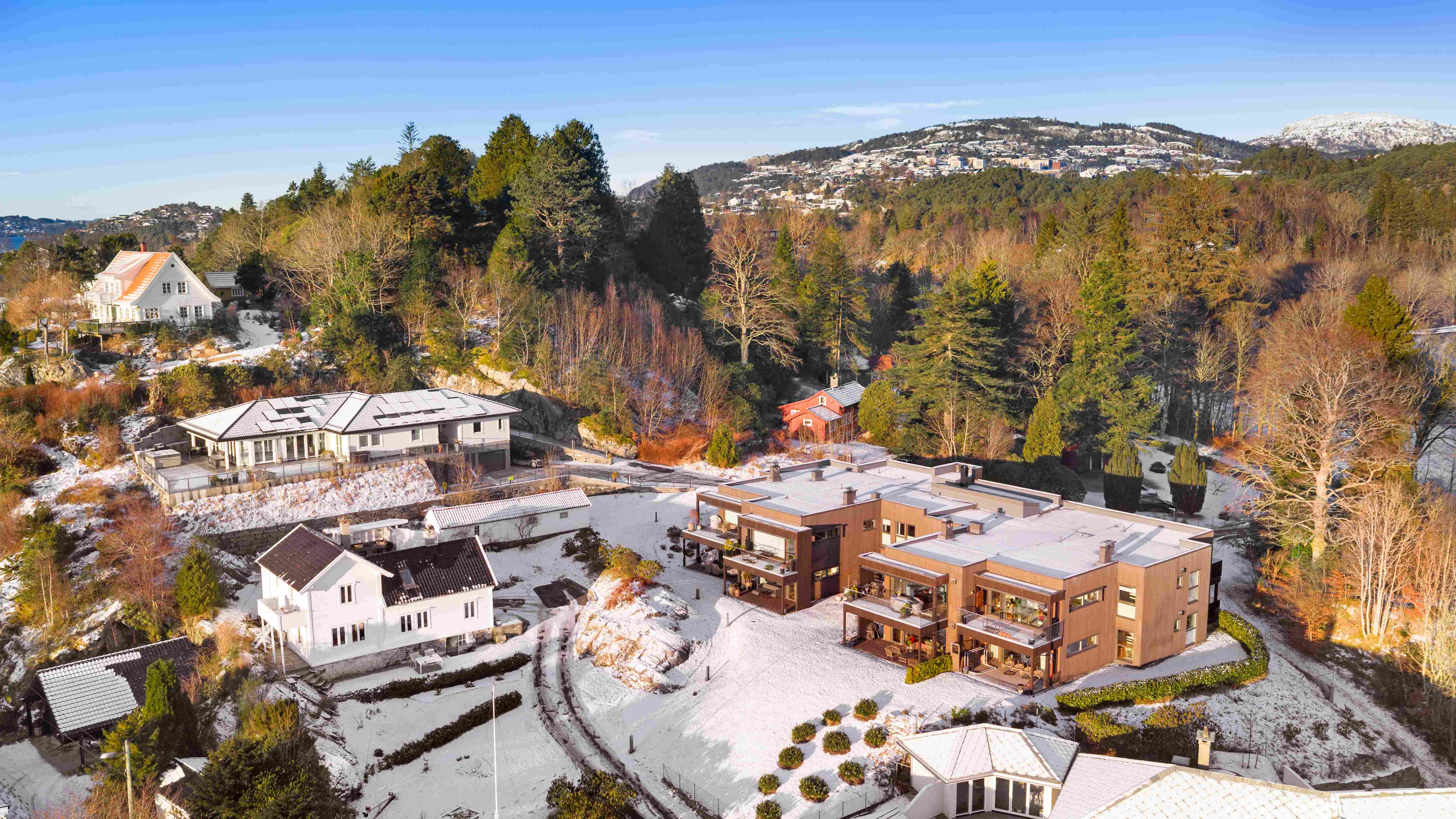 I det du ankommer området ved hull 5 på Bergen Golfklubb, senker roen seg. Omgitt av grøntarealer, sjø og åpent landskap ligger Sameiet Villa Åstvedt – et arkitektonisk gjennomført og eksklusivt boligprosjekt bestående av kun åtte selveiende leiligheter. Bygget stod ferdigstilt i 2018 og fremstår moderne, tidløst og med en diskret luksus som umiddelbart gir et godt førsteinntrykk. Utvendig fasade ble nymalt i 2024.