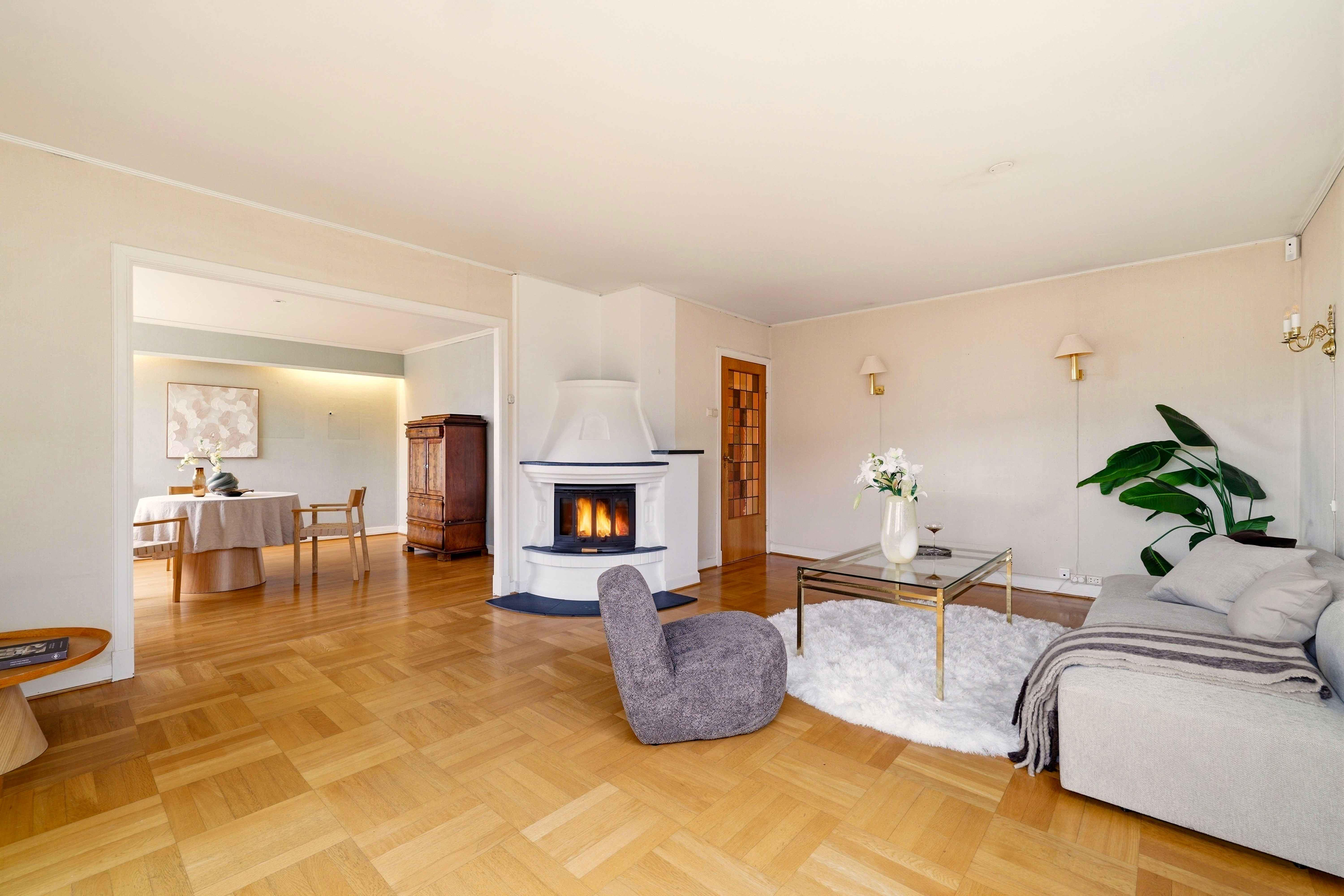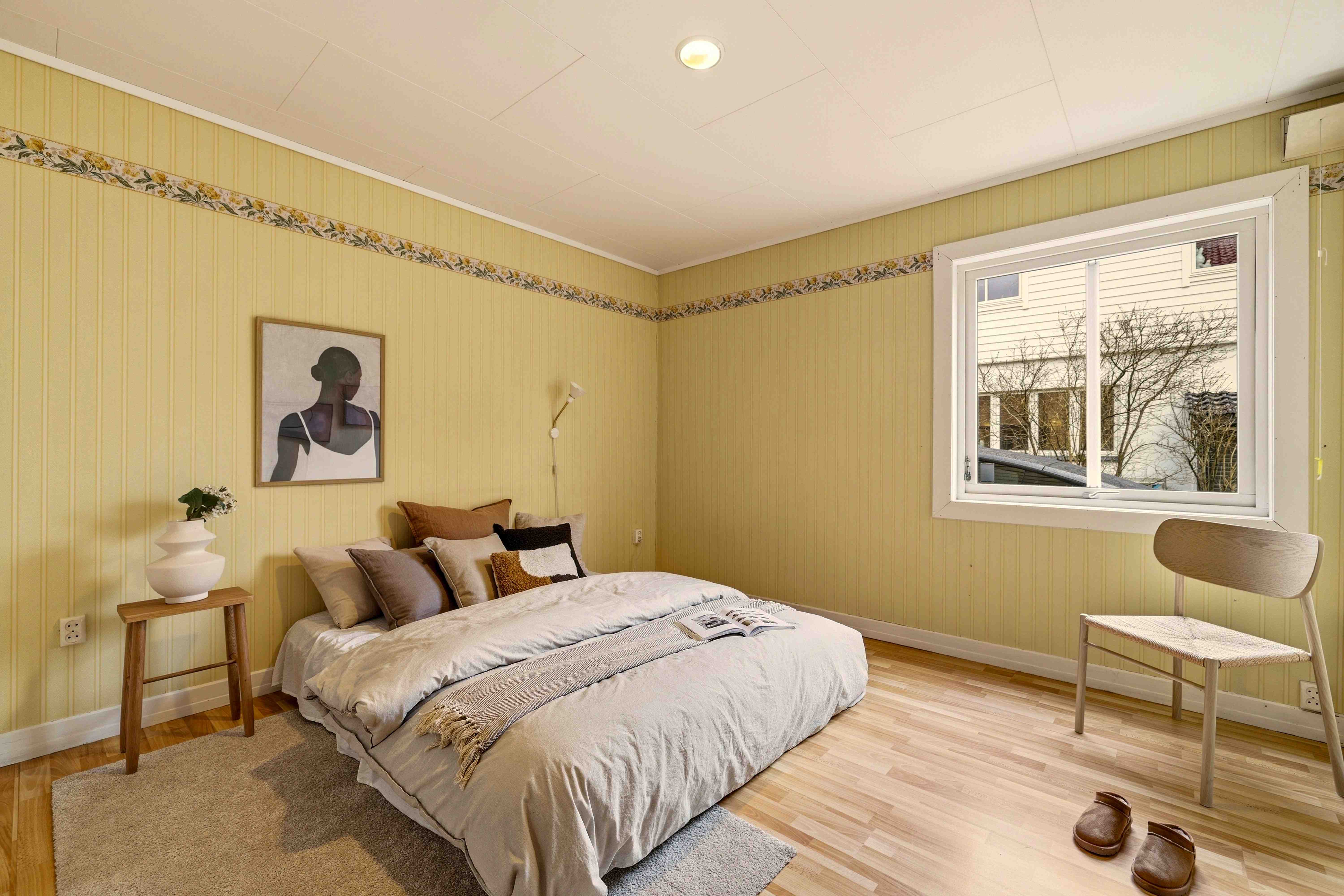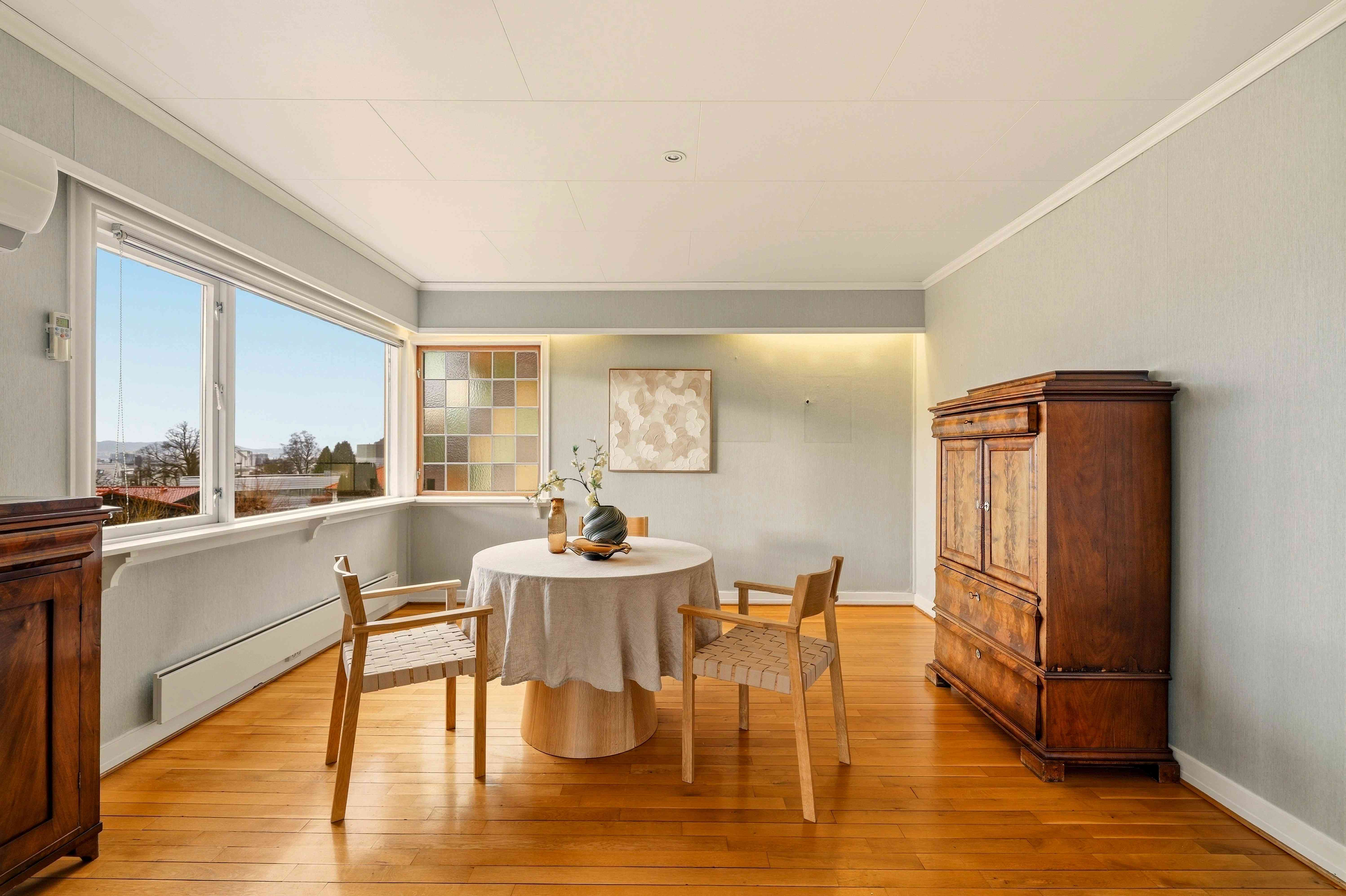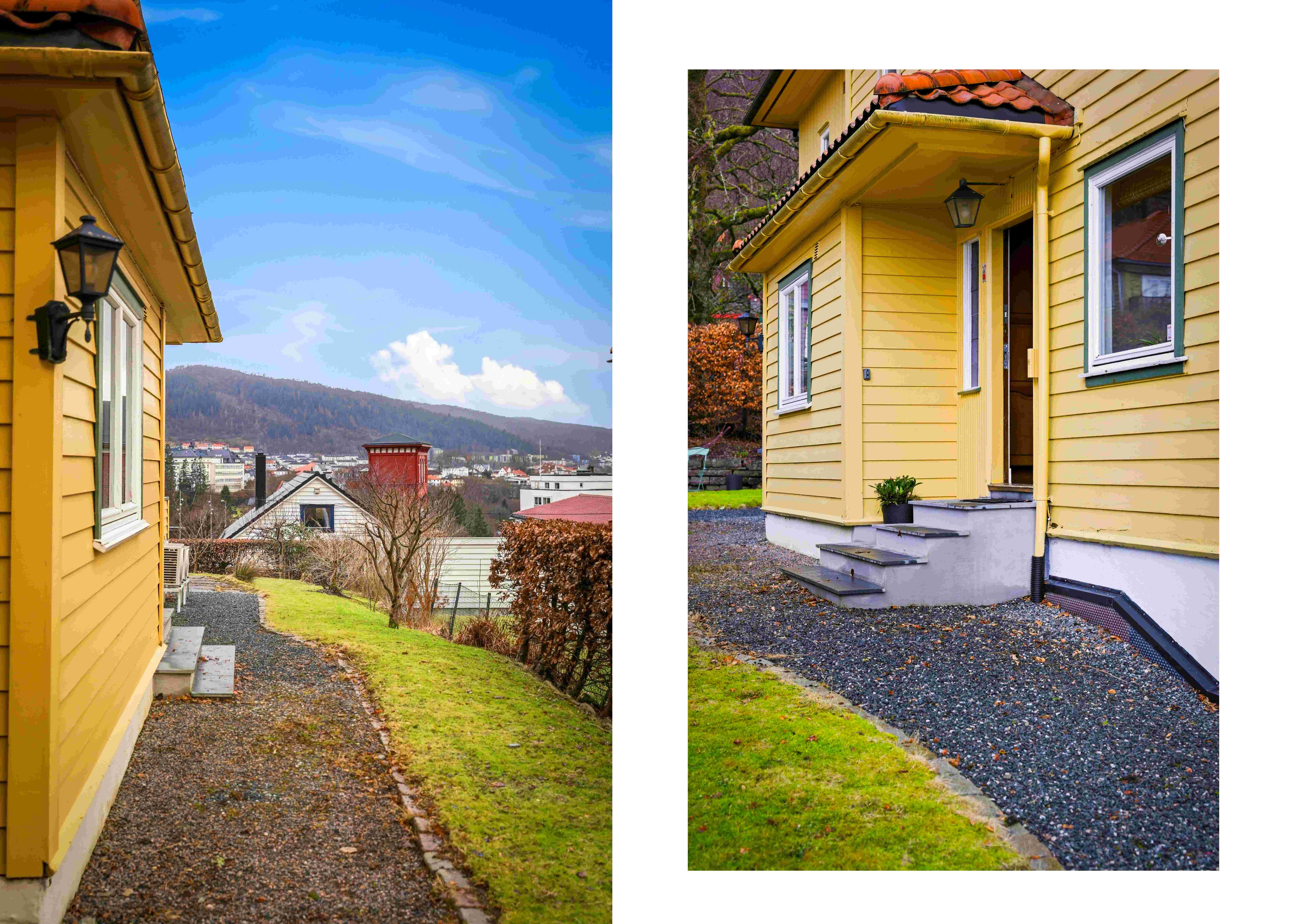 Denne boligen utgjør husets 1. etasje og fremstår i praksis som en romslig og lettstelt leilighet, med alle de fordelene en bolig på ett plan gir. Boligen har et privat og skjermet inngangsparti på baksiden av huset, som gir en rolig og tilbaketrukket adkomst.