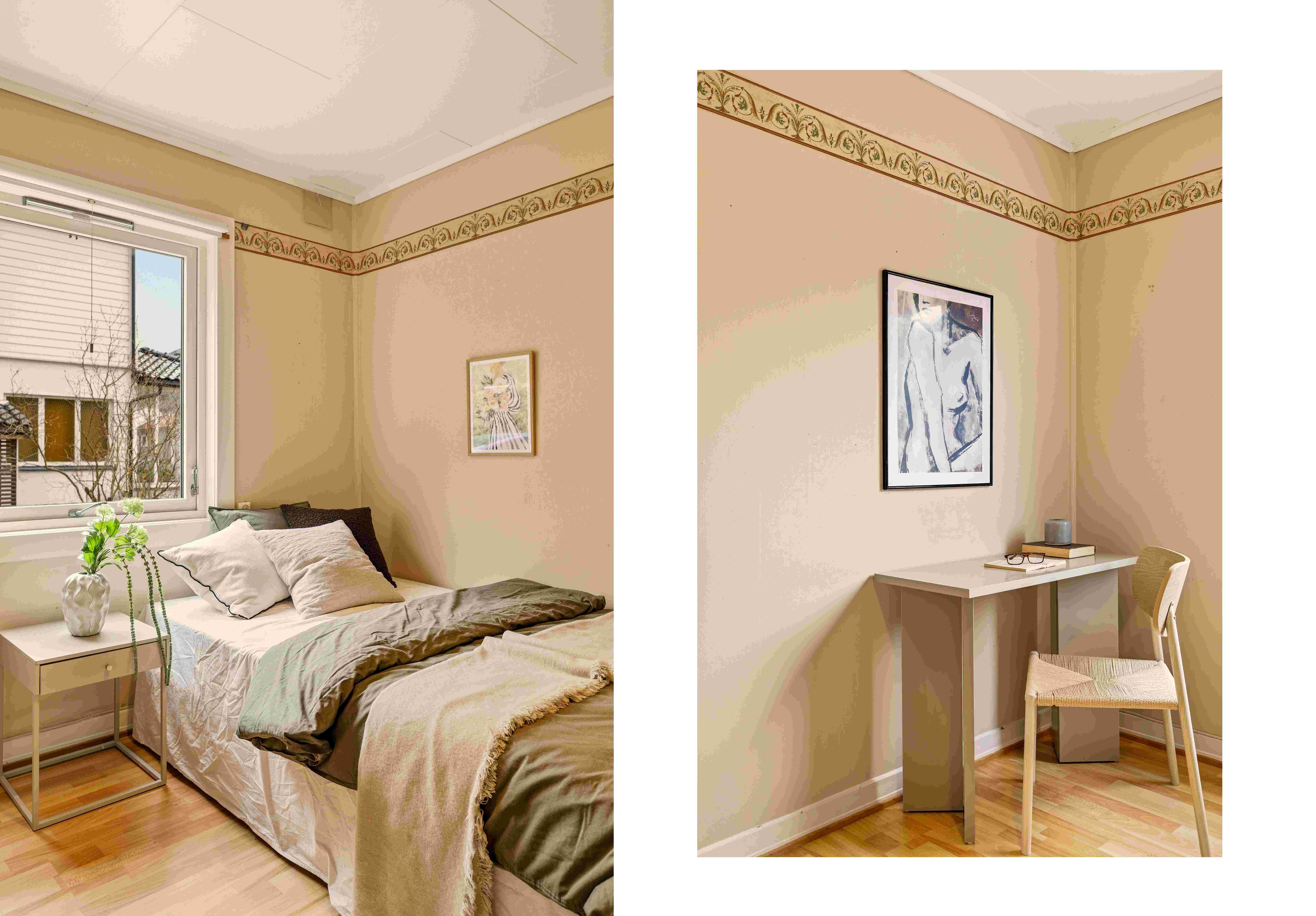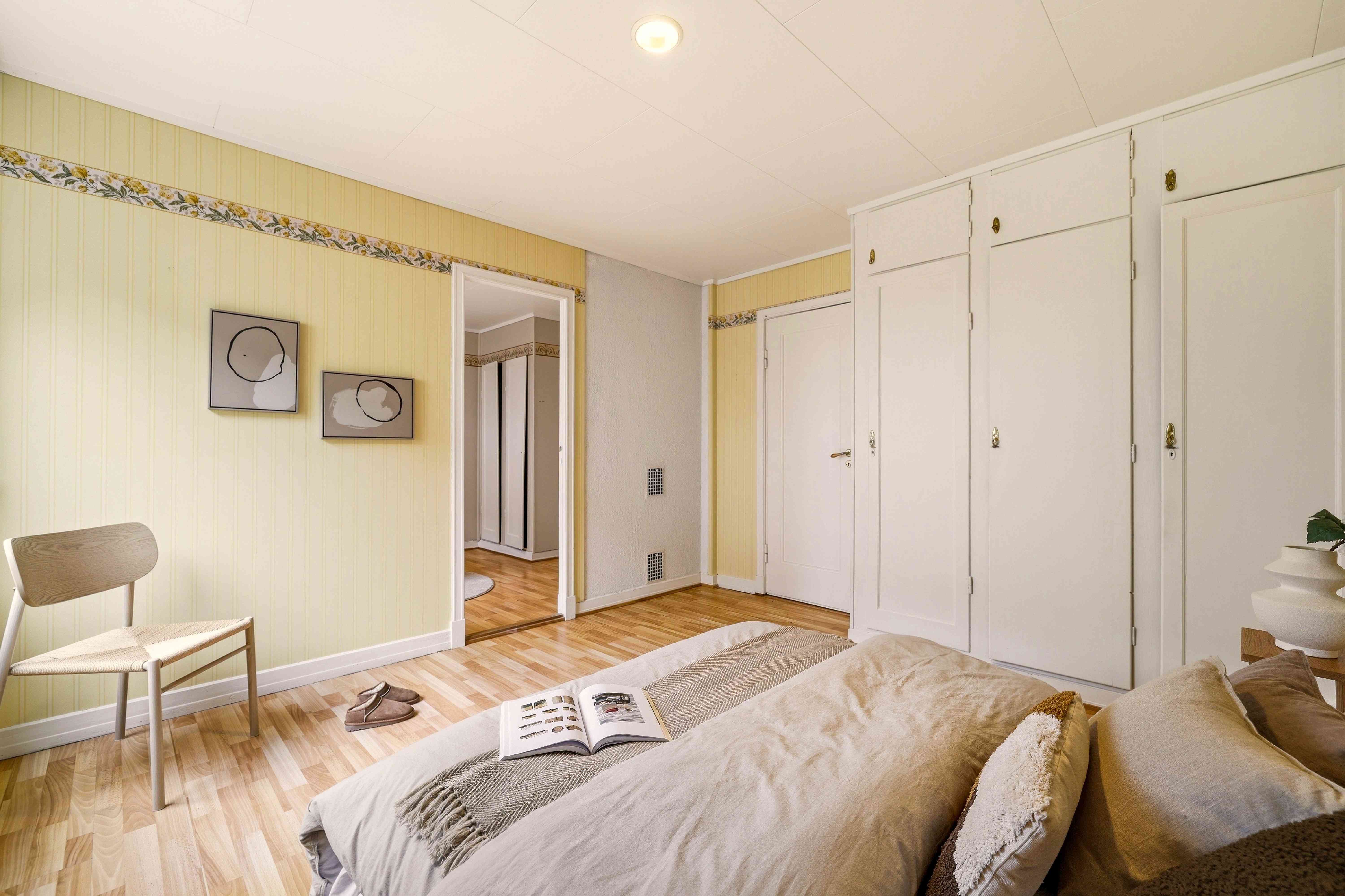 Boligen har en god planløsning med tre soverom, alle med plass til garderobeløsninger. Hovedsoverommet er på 13,6 m². Soverommene er samlet på den ene siden av boligen, noe som gir en praktisk og skjermet sone for hvile og privatliv.