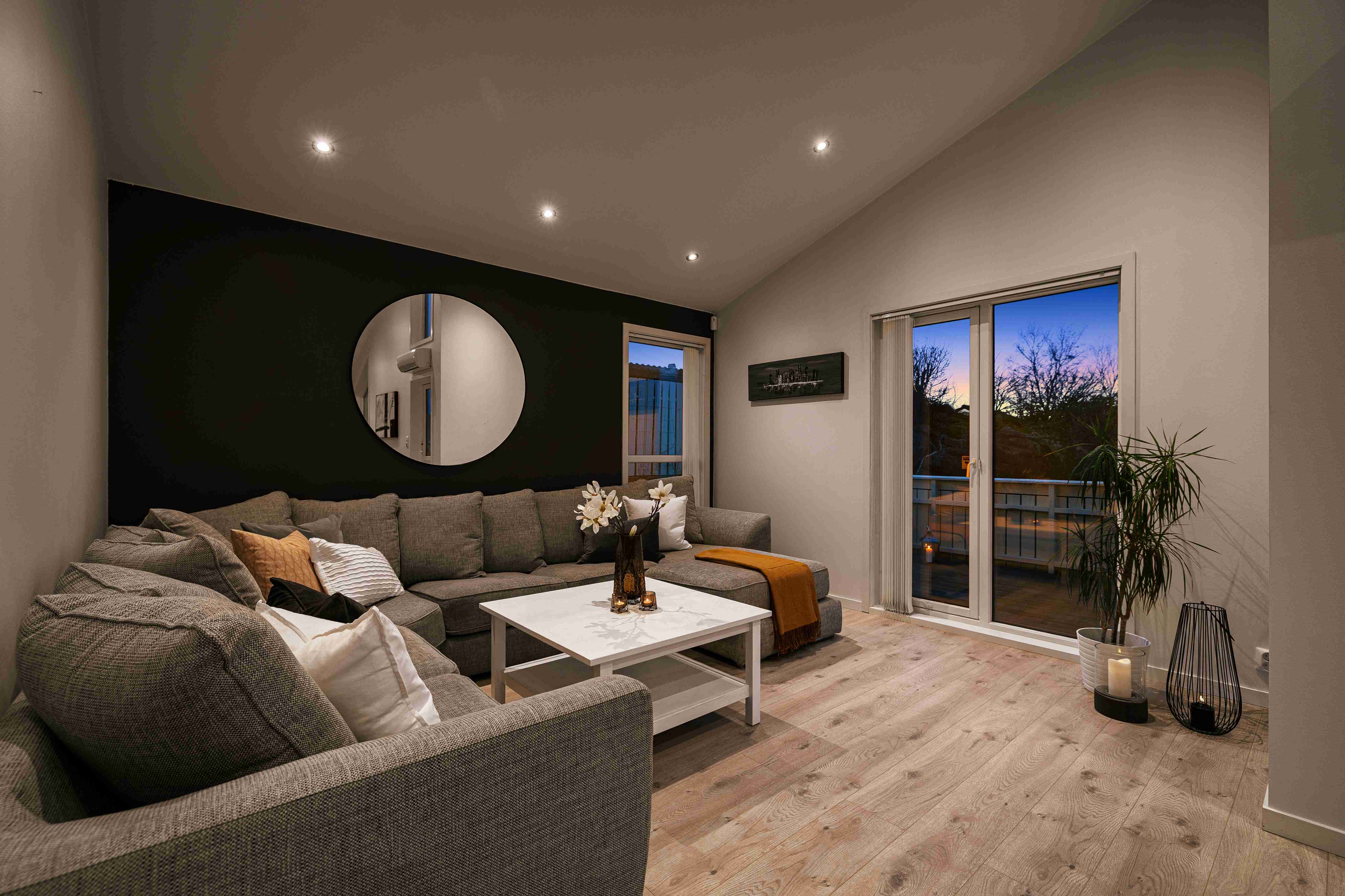 Det er utstrakt bruk av downlights i boligen, installert i tak i de fleste rom. I 2022 ble det lagt nytt 1-stavs gulv i stue/kjøkken på 66,5 m² i hovedetasjen. Flere av rommene er det siste året oppgradert med nye, tidsriktige farger. Utvendig fasade ble malt sommeren 2025. Boligen har elektronisk dørlås fra EasyAccess på inngangsdøren.