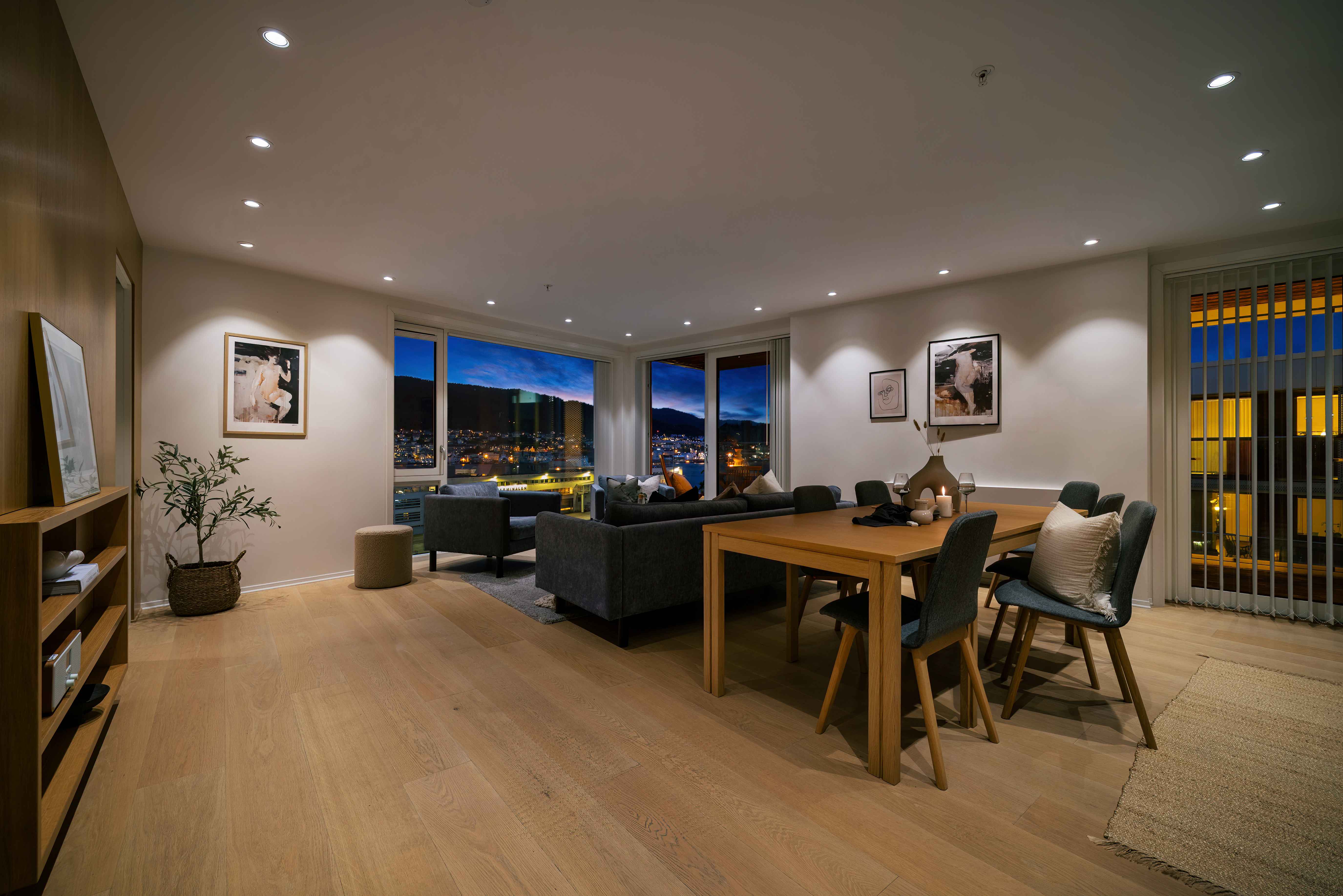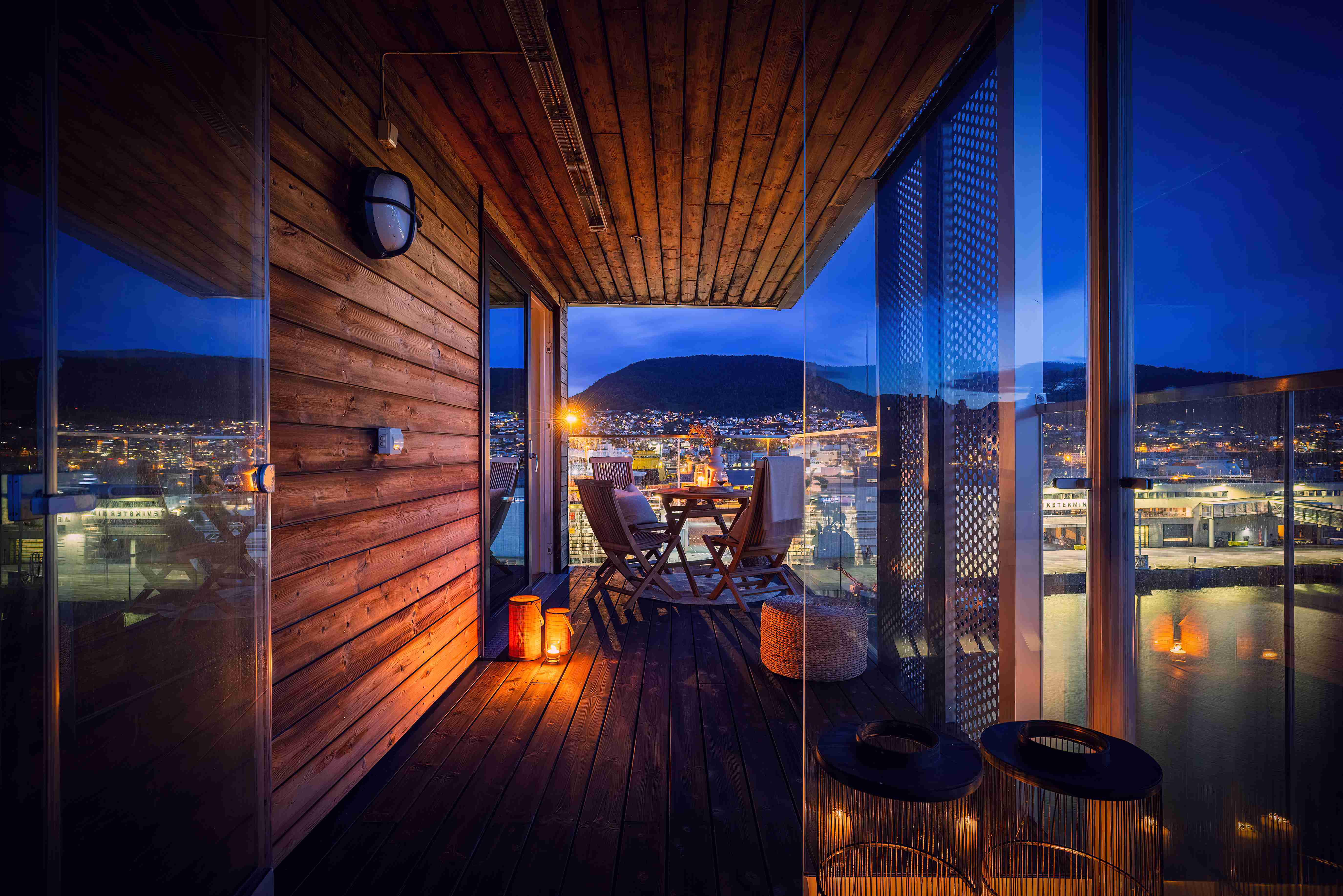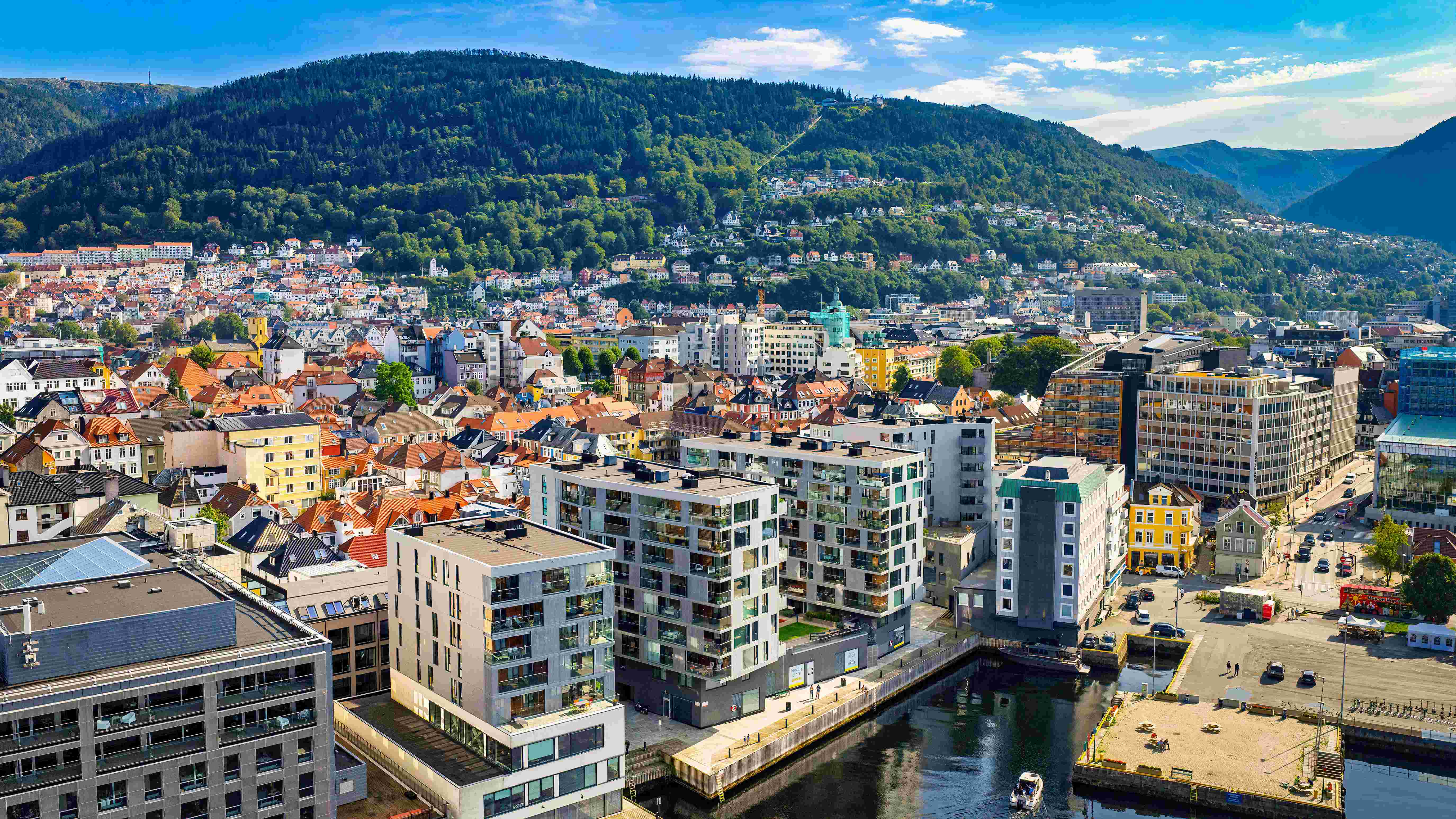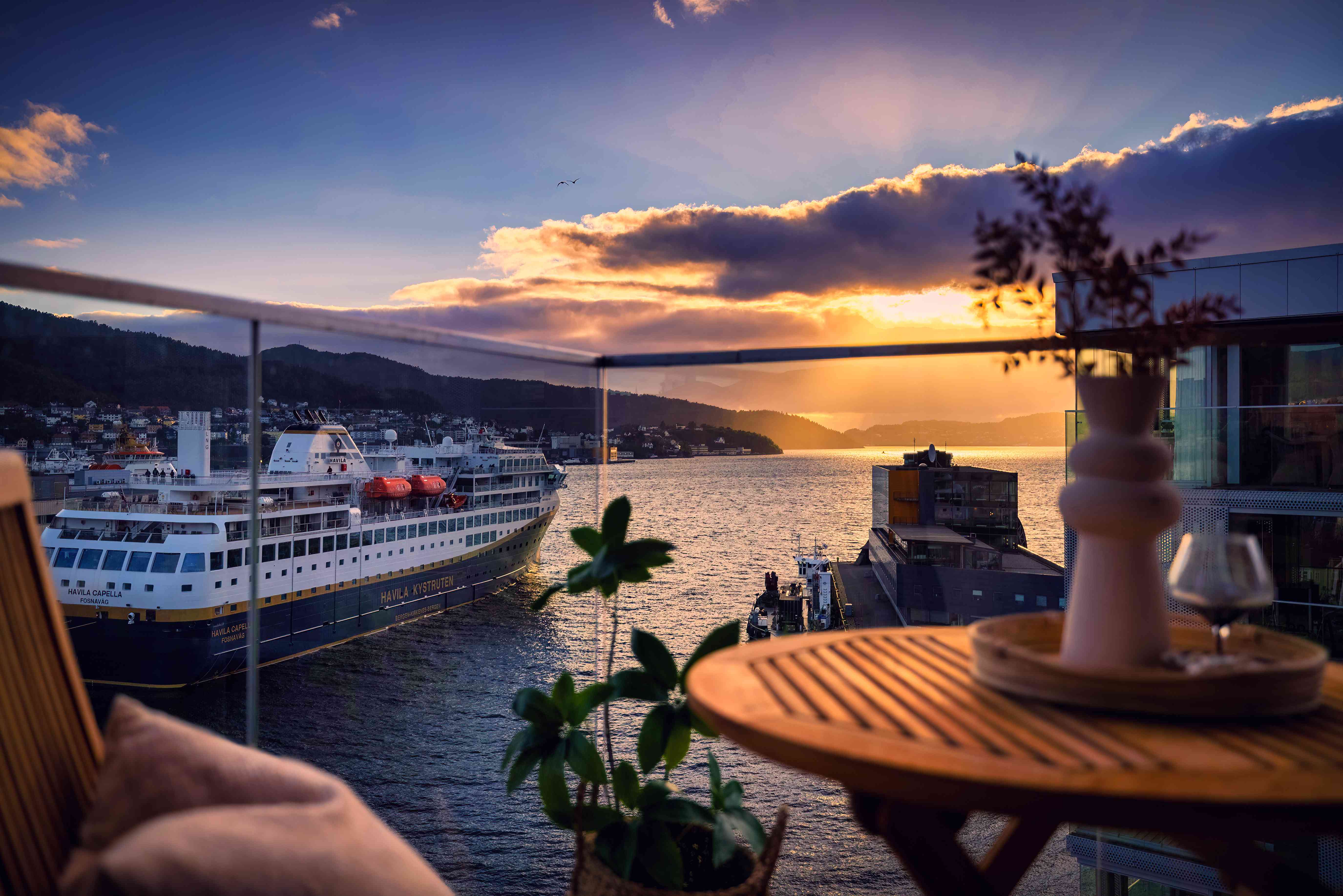 Leiligheten i Nøstegaten 54B ligger høyt og fritt i byggets 8. etasje med direkte heisadkomst fra garasjeanlegget. Den vestvendte plasseringen gir utsyn mot innseilingen til Bergen og solforhold fra morgen til sene kveldstimer. Kombinasjonen av høy etasje, åpen himmel og flere uteplasser gir kvaliteter som sjelden oppnås i sentrumsnære leiligheter.